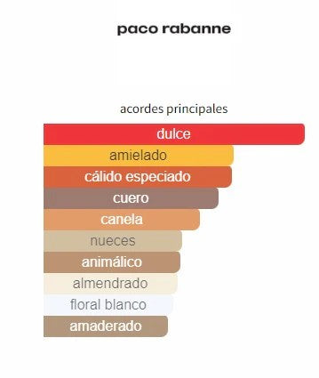 Notas principales: cacao amargo y azafrán en la apertura, seguidos de un corazón especiado de canela y flor de azahar. En la base, cuero y madera de oud aportan profundidad y misterio. Es dulce, especiada y muy masculina, ideal para atraer todas las miradas.